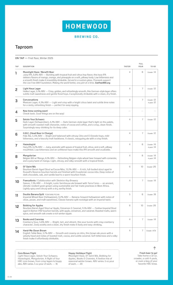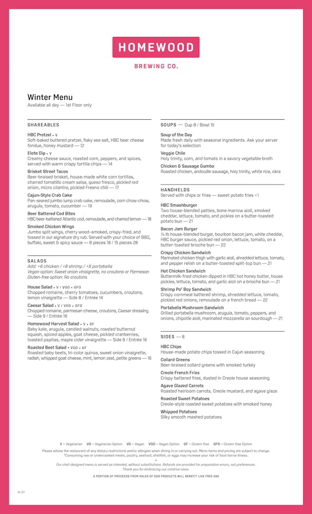 Menu items, pricing, and availability may vary.